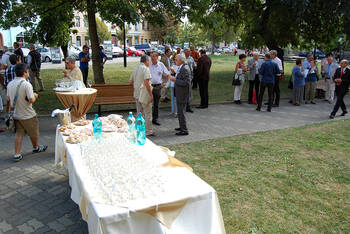 Besucher im Gespräch mit Dechant Stadtpfarrer Bruno Fröhlich.
